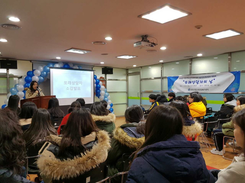 구리시(시장 백경현)에서는 지난 16일 구리시청소년상담복지센터(센터장 고세희) 주관으로 청소년 또래 상담자들이 참석한 가운데 2016년‘또래 상담자의 날’을 가졌다.