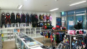 부대시설로서는 수영에 필요한 모든 제품들이 구비되어 있는 수영복매장과 간단한 간식을 구매 할 수 있는 매점이 1층에 자리하고 있으며, 1층과 지하1층에는 수영도구(오리발,세면도구 등) 일체를 보관할 수 있는 개인사물함 등이 있다.