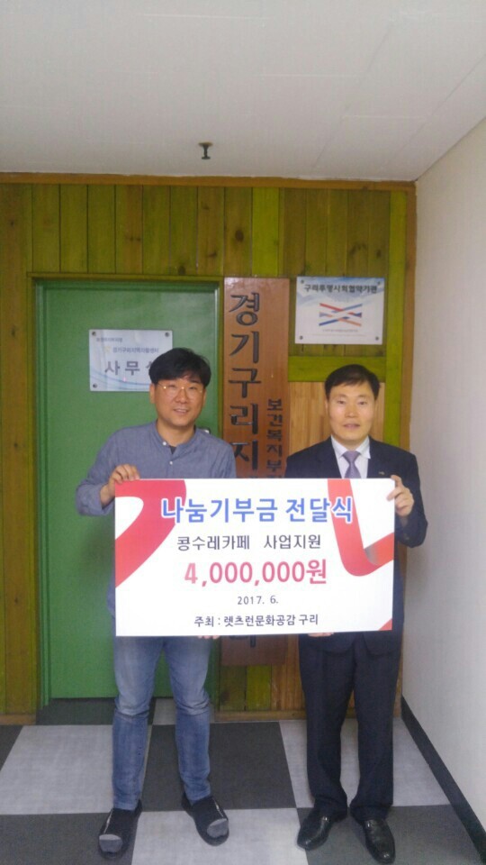 A: 1993년 3월 개장한 “구리문화공감센터”는 구리시민과 남양주시민의 애정어린 사랑 덕분에 성장하고 발전해오고 있습니다. 시민여러분께 감사드리 며, 저희도 가능한 범위에서 지역발전에 기여코자 최선을 다하겠습니다. “민족 최대의 명절 설을 맞이하여 모두 건강하시고,새해 복 많이 받으시길 기원합니다.” 감사합니다.