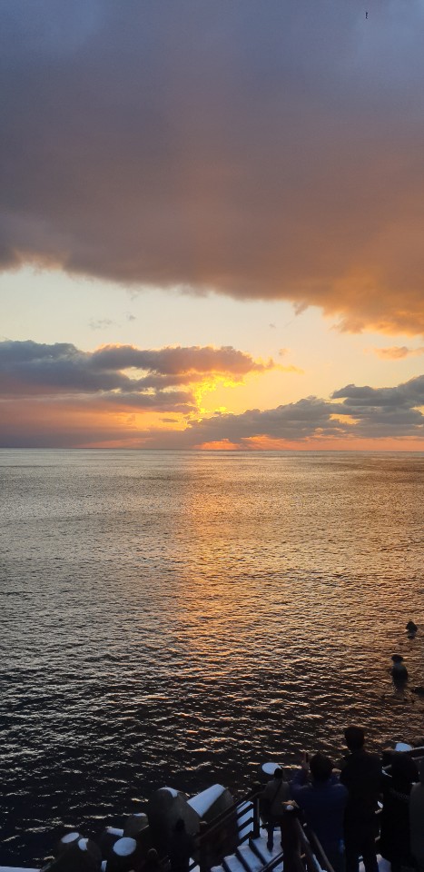 구름 위를 올라온 태양은 강하게 바다위를 비추며 구름 주변을 빨갛게 물들이는 해무리는 그야말로 장관이었습니다.
