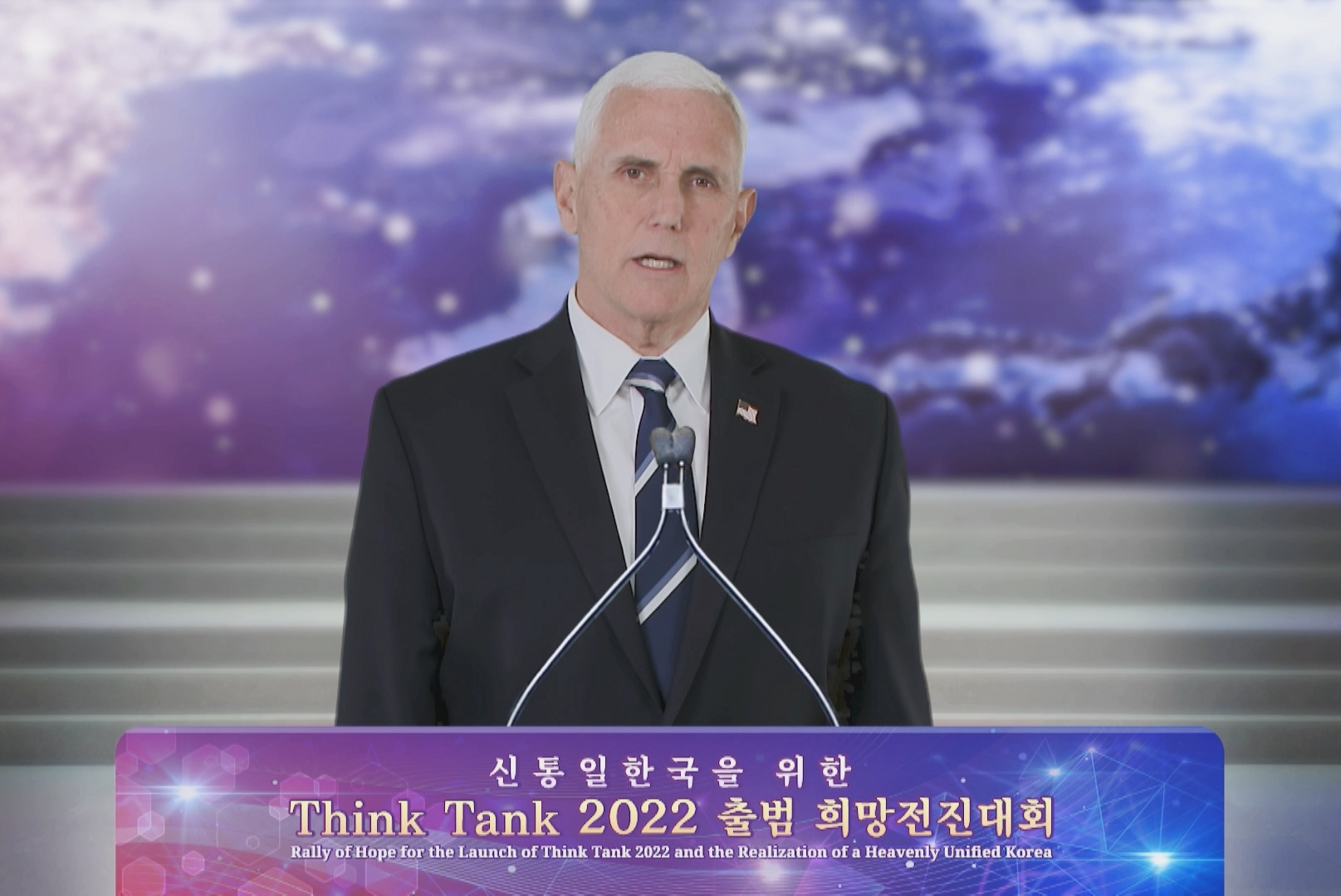 마이크 펜스 前 미국 부통령은 기조연설에서 “10억 명 이상이 백신 접종을 완료했고 코로나 바이러스 종식이 하루하루 다가와서 공익을 위해 국가들이 힘을 합하면 못할 것이 없다는 교훈을 얻었다”며, “부통령으로 재임했던 4년간 미국과 한국은 법치주의 아래 많은 성과를 냈고, 공동 방위에 대한 우리의 약속은 변하지 않을 것이다”고 했다. 그리고 “우리의 공동의 상대에 맞서면서도 상대를 친구로 만들겠다는 강한 신념을 갖고 노력하면 우리가 살아있을 때 한반도 평화 통일의 초석을 놓을 수 있다고 믿는다”면서, “종교적 자유, 언론의 자유, 민주주의, 자유 기업 체제 원칙, 건강한 가정, 교육과 법의 동등한 대우 등 근본 가치는 미국과 한국을 70년 가까이 하나로 묶어있으며, 이 가치를 지키려는 우리의 결의가 변함없으면 전쟁으로 갈라졌던 땅이 하나의 국가와 민족이 되고 평화로 단결하게 되는 날이 곧 올 것이다”고 강조했다.