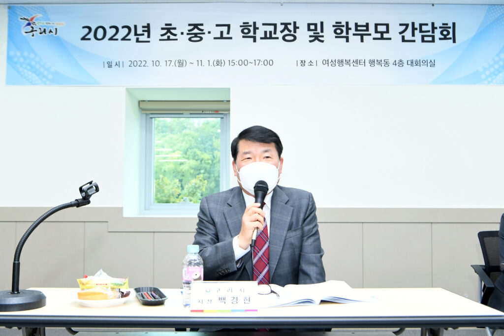 백경현 구리시장은 지난 10월 17일부터 11월 1일까지 여성행복센터에서 관내 32개 초·중·고 학교장 및 학부모들을 만나 구리시 주요 교육사업을 안내하고 교육 현안에 대해 논의하는 학교 간담회를 개최했다.