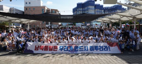 행사의 마지막 순서로 유럽, 중동, 한국, 일본의 청년들이 함께 손을 잡고 ‘우리의 소원은 통일’ 노래를 부르며 남북통일을 위한 간절한 마음을 나눴다. 이와 동시에 남북통일의 중요성을 알리기 위한 노방 강연도 진행됐다.