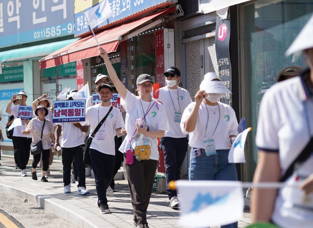 이날 설악면 신천중앙로에서 시작된 평화행진은 주변 일대로 이어졌으며 마지막 지점인 눈메골 광장에서는 청년학생들의 스피치 시간을 가졌다. 독일 청년 탈리아 포크(Talia Pock)는 평화통일을 위한 결의 메시지를 통해 “통일을 먼저 이룬 독일의 경험을 바탕으로 한반도의 평화적 통일에 대한 염원을 강조하며, 남북통일을 전 세계가 함께 해결해야 할 과제”라고 제시했다.