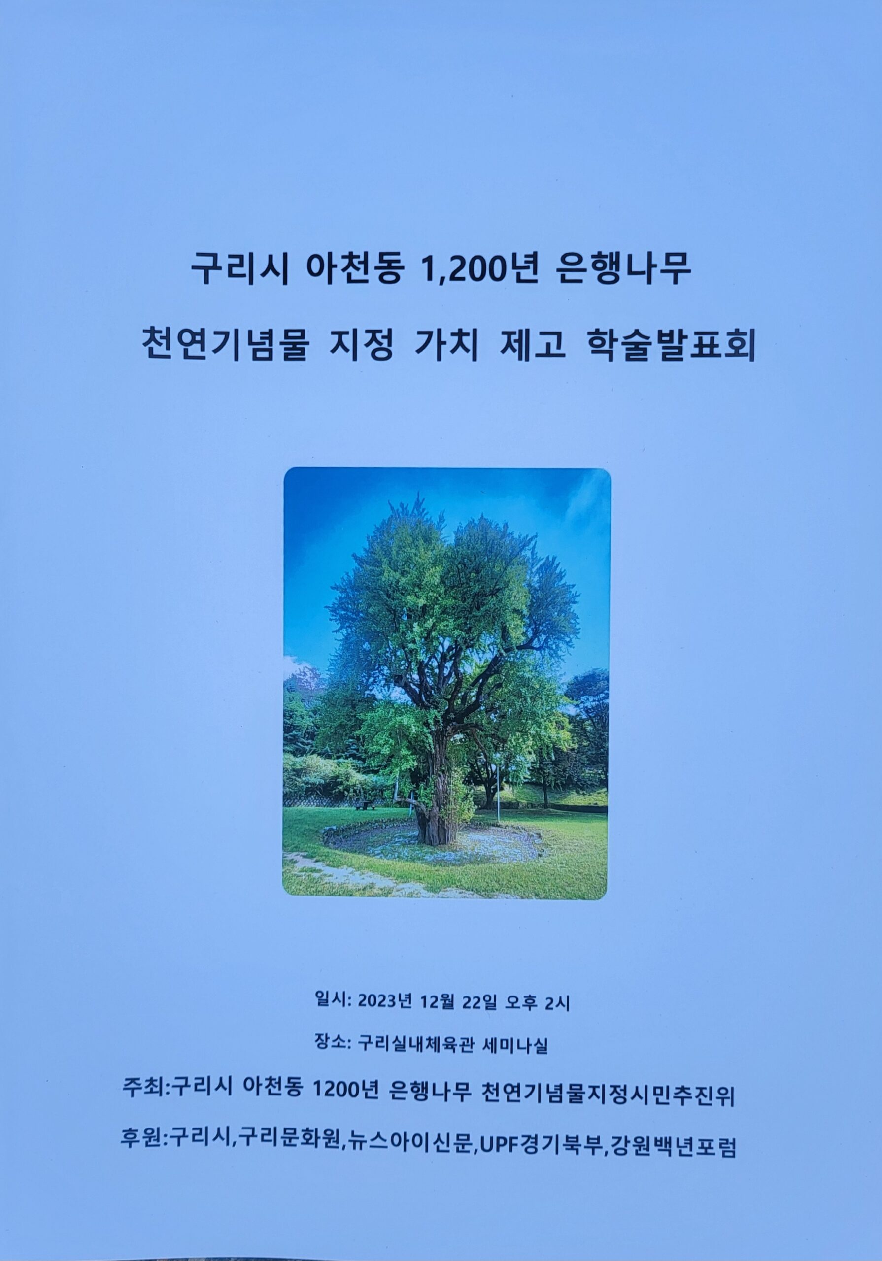 구리시 아천동 1200년 은행나무천연기념물 지정 추진 시민위는 은행나무의 최초 발굴, 구리시민 여론형성을 위해 3만명의 서명운동, 명사초빙회, 사진 전시회 , 민속학적으로 명맥이 끊어진 당산제를 2022년부터 재현해 구리시와 시민의 안녕을 기원해오고 있고, 거주했던 어르신들의 전설 등을 채록해 영상 보전을 해오고 있다.