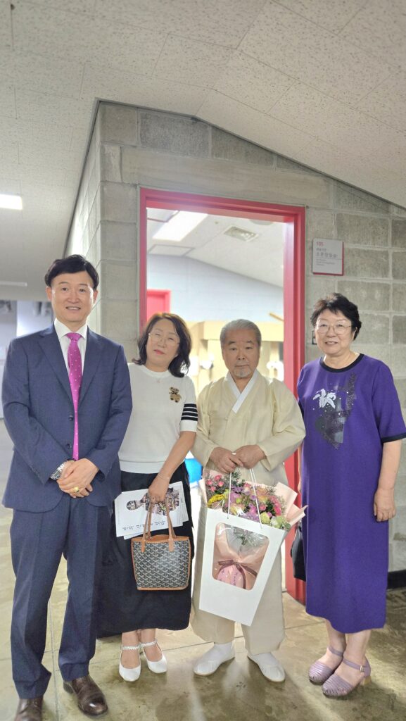 한편, 8년째 추진 중인 구리시 아천동 1200년 은행나무 천연기념물 지정 추진위(상임대표 허득천,박홍기)에서는 홍보대사인 김덕수 교수의 한예종 교수퇴임을 축하하고자 추진위 허득천 상임대표, 남상화 이사와 구리문화재단 ‘진화자’ 대표이사가 함께 동행해 김덕수 교수의 그간의 노고와 헌신해준 의미에 감사하며 꽃다발을, 진화자 대표이사는 수제압화시계(꽃누름)선물을 전달했다.