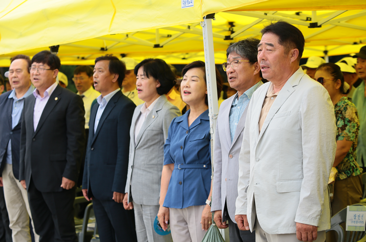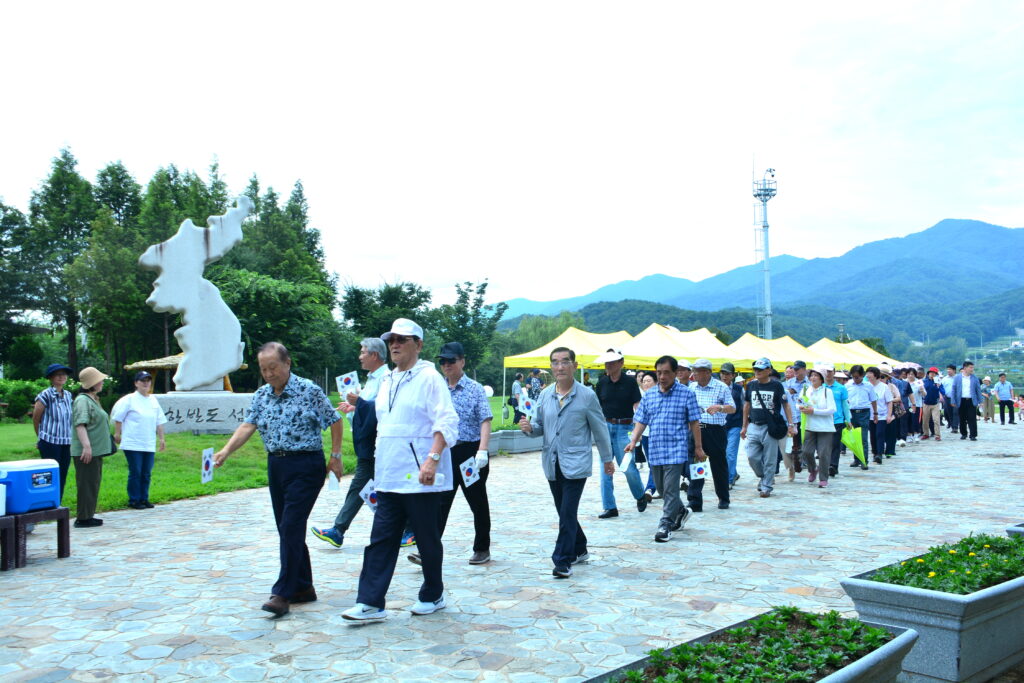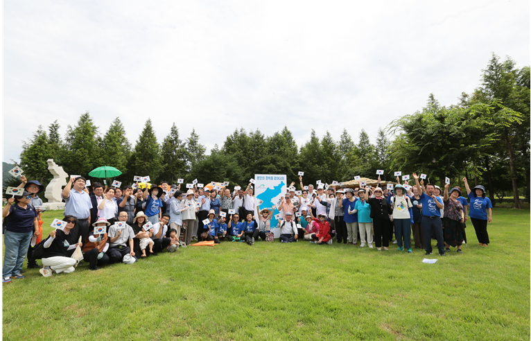 7월31일 오전 10시, 양구군 한반도섬에 도내 18개 시‧군의 남북통일운동국민연합 회원 200여명이 모여 들었다. 김철수 강원백년포럼 인제군 회장의 사회로 양구의 다문화가정의 동아리 원앤선샤인(One &Sunshine)의 식전공연을 시작으로