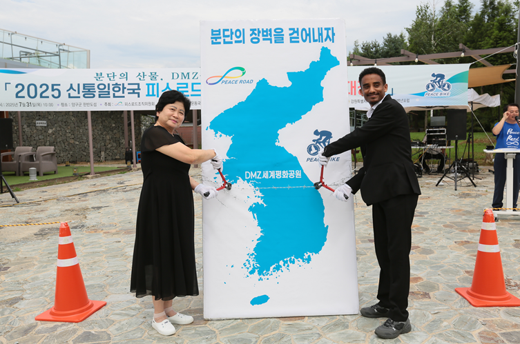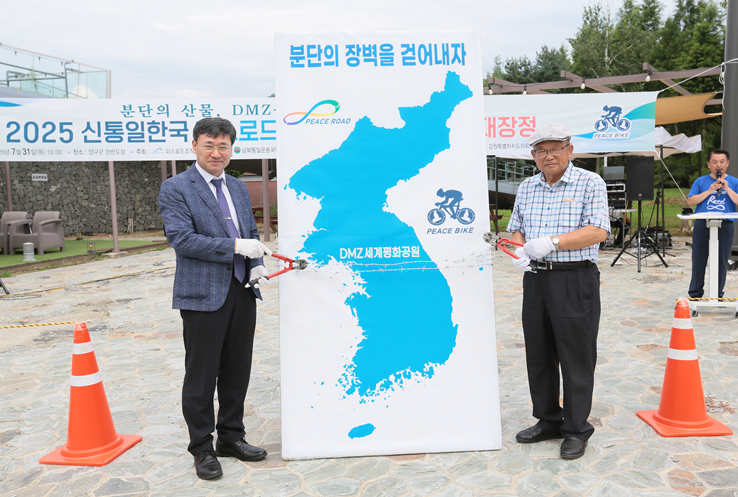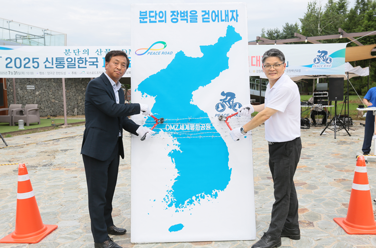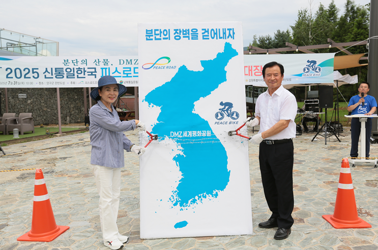 (사)남북통일운동국민연합이 주관하고 통일부와 17개 광역 시‧도를 포함한 전국 50여개 단체 및 공공기관에서 후원하는 ‘2025피스로드 통일대장정’ 행사가 지난 7월초부터 닻을 올려 전국 광역시‧도 및 시‧군단위에서 순차적으로 진행되고 있다. 이 가운데 세계 유일의 분단도인 강원특별자치도에서는 피스로드 통일대장정 출정식과 함께 ‘분단의 장벽, 휴전선 철조망 해체 퍼포먼스’가 국토의 정중앙 양구군 한반도섬에서 개최되어 눈길을 끌었다.