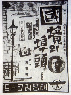 〈국경의 부두〉고운봉(1920∼2001년 본명 고명득, 충남 예산 출신)이 1939년 부른 데뷔곡으로 7월에〈아들의 하소〉와 함께 태평레코드사에서 SP 음반에 발매한 곡으로, 국경을 넘나들면서 고향에 대한 향수와 이별의 슬픔이 자연의 풍광과 어울리는 신의주 부두의 풍경을 신의주에서 살던 유도순(1904년∼1938년)이 잘 표현해 주고 있습니다. ☞ 용암포(龍巖浦)는 평안북도 용천군 압록강 하구에 있는 포구로 신의주 외항입니다. 똑딱선은 발동기로 움직이는 작은 배, 뾰족배는 앞뒤의 모양이 날카롭게 생긴 배입니다. 유초도(柳草島)는 평안북도 신의주 압록강에 있는 큰 섬으로 자갈과 모래가 풍부합니다.