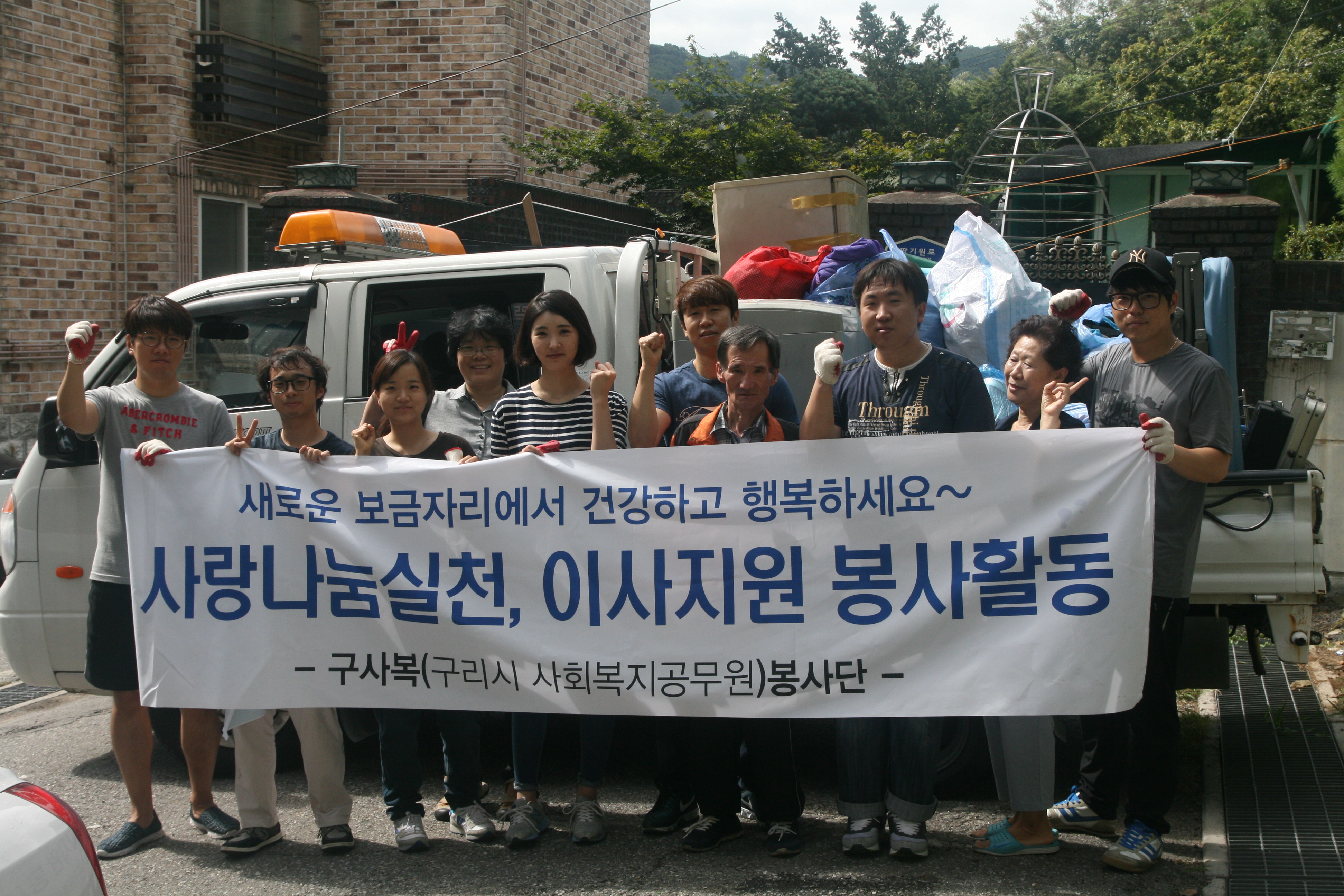 구리시(시장 백경현)를 거점으로 활동하는‘구사복봉사단(회장 윤덕수)’은 지난 3일 교문동 딸기원에 거주하는 차상위 계층 김00의 이삿짐을 돕는 것으로 첫 봉사활동이 시작됐다.