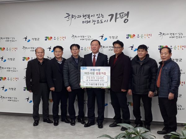 가평전통잣된장은 9900만원 상당의 간장(1L) 및 된장(500g) 330세트를 군에 전달했다. 이 상품은 시중에서 30,000원에 판매되고 있다.