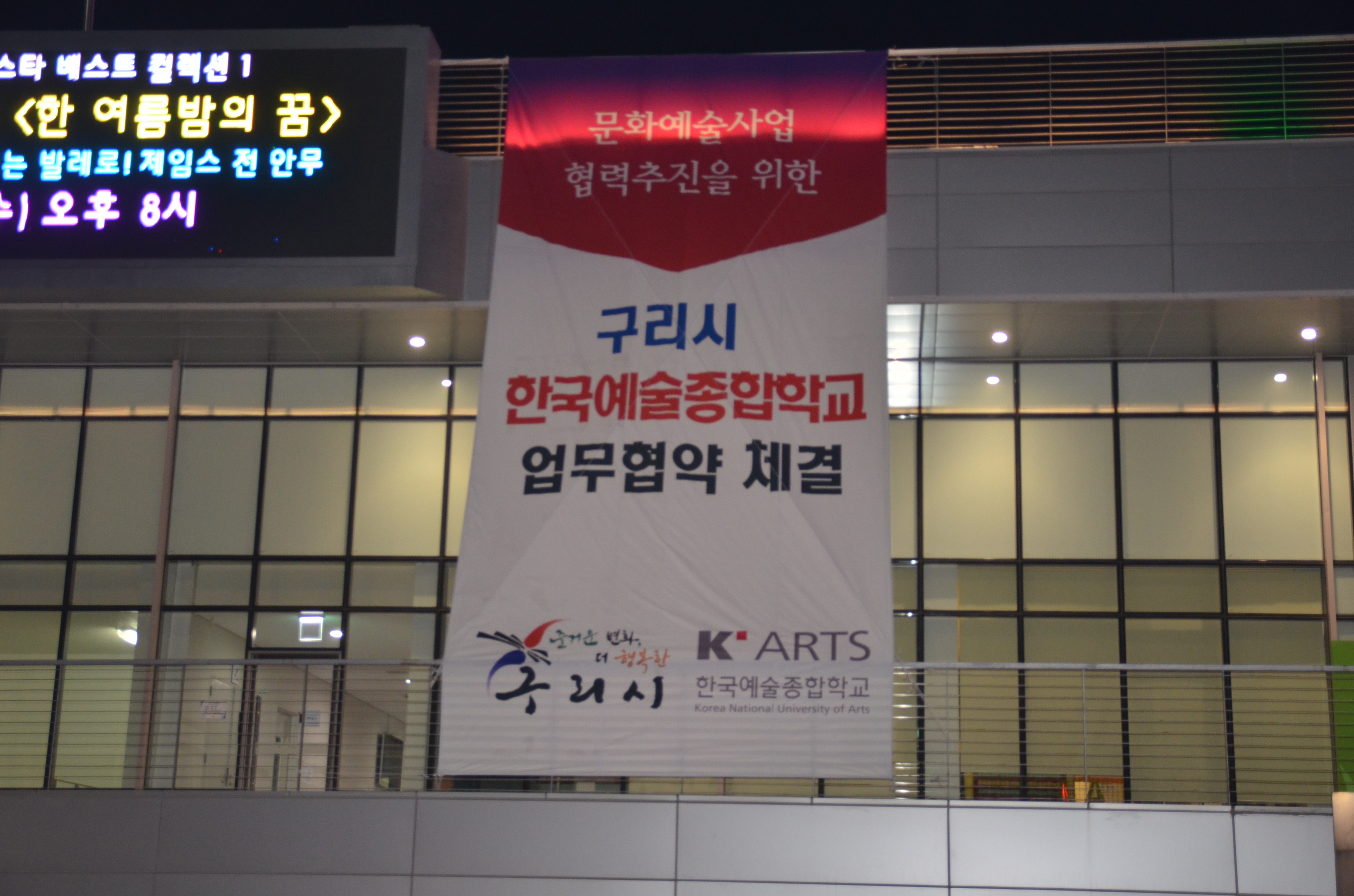 한국예술종합학교 이전 유치 추진에 전력을 다하고 있는 구리시가 20일 6시에 구리아트홀에서 업무협약 MOU를 체결했다.
