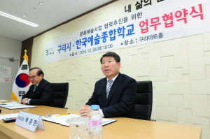 백경현 시장은 협약식 인사말을 통해“우리나라의 문화예술분야에서 인정받는 한국예술종합학교와 MOU를 체결 한 것은 관·학 협력을 위한 본격적인 출발을 알리는 신호탄이자 구리시로의 학교 이전 유치 추진에도 큰 전환점이 되는 동력의 계기가 될 것”이라며 기뻐했다.