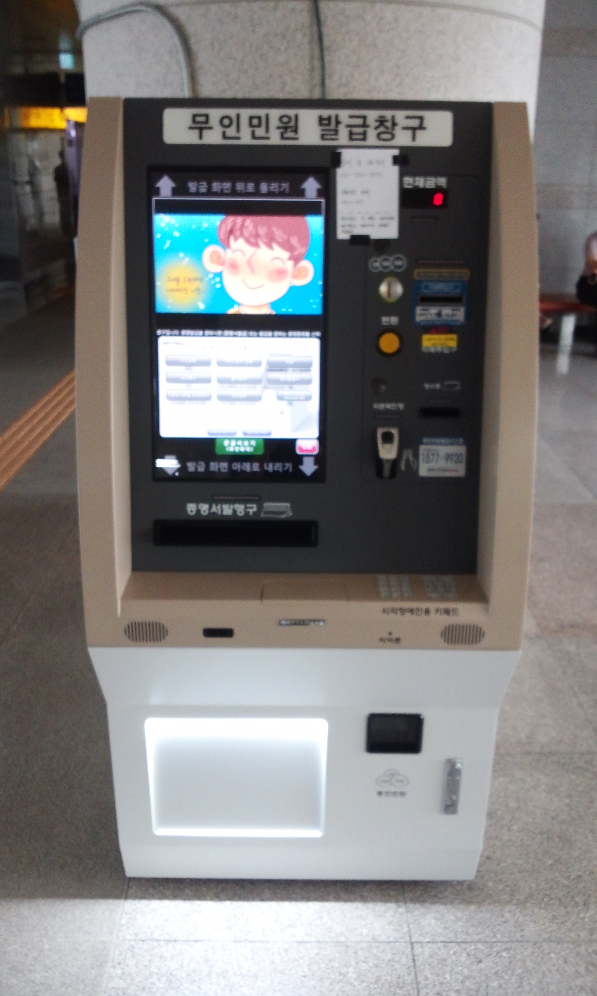 금번에 설치한 발급기는 최신식 기능들을 보유한 기종이며, 특히 장애인의 편의를 고려한 시각장애인용 키패드 설치, 발급화면 높이조절기능 및 음성안내(TTS)지원 등이 가능해 장애인과 일반인 모두 편리하게 이용할 수 있다.