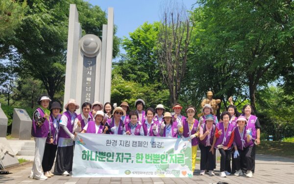 한편, 세계평화여성연합은 오는 11월 환경 보호의 중요성을 알리고 실천을 유도하기 위한 환경 지킴 캠페인 ‘줍깅(걷거나 뛰면서 길거리의 쓰레기를 줍는 활동)’ 활동을 전국 동시 봉사활동으로 진행할 예정이다.
