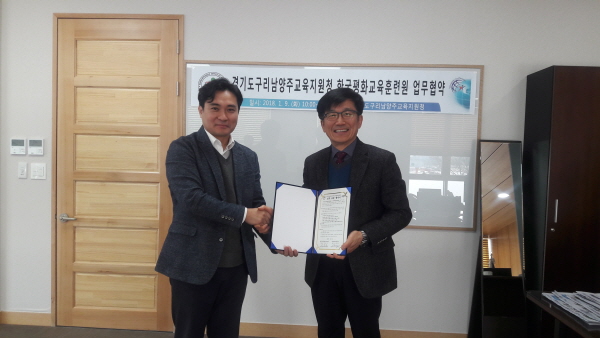 구리남양주교육지원청(교육장 이상욱)은 학교공동체의 갈등조정과 회복적 생활교육으로 평화로운 학교문화 조성을 도모하기 위해 한국평화교육훈련원(원장 이재영)과 1월 9일(화) 업무협약을 체결했다.