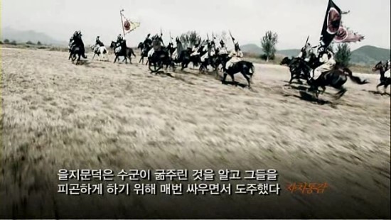 실제로 수나라 장수 우문술이 이끄는 선봉대 30만 대군은 보급선이 끊긴데다가 을지문덕 장군이 작전상 후퇴하면서 들판의 먹고 마실 것을 없애는 청야(淸野)전술로 인해 평양으로 가는 행군 중간에 식량이 바닥나 제대로 힘 한 번 못쓰고 돌아오다가 살수에서 역공을 받아 대군이 거의 전멸되었다.