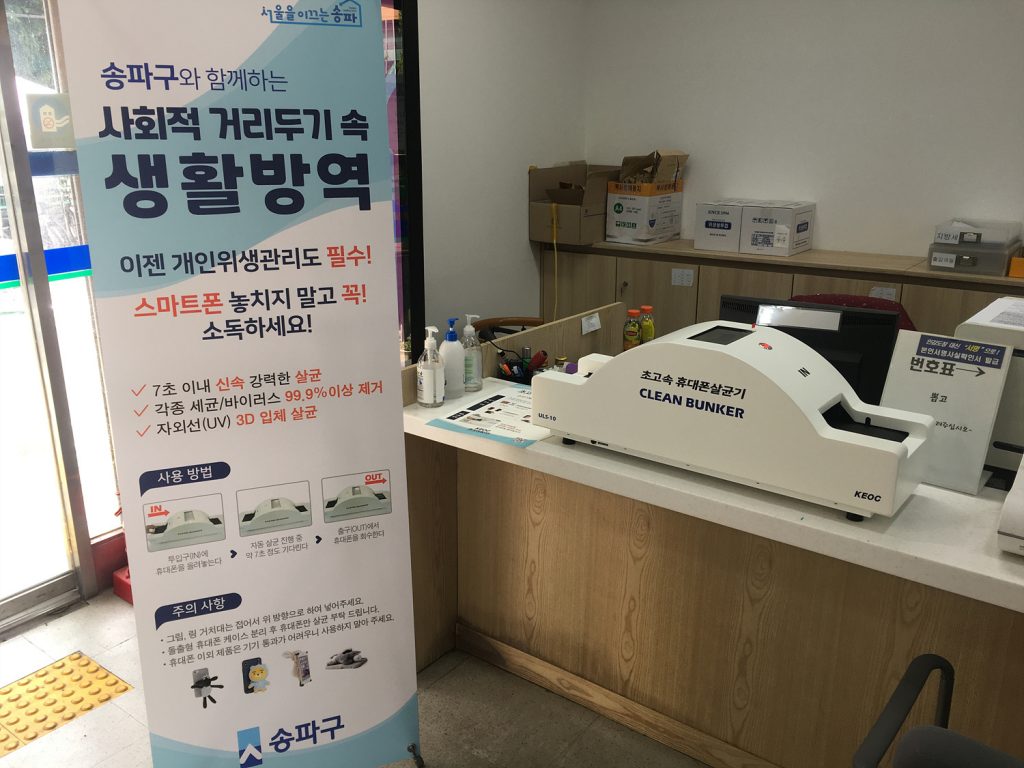 송파구(구청장 박성수)는 코로나바이러스감염증-19(코로나19) 예방하기 위해 서울시 자치구 최초로 잠실본동 주민센터(송파구 백제고분로15길 9)에 초고속 스마트폰 살균기를 지난 5월 28일부터 시범설치 운영했다고 1일 밝혔다.