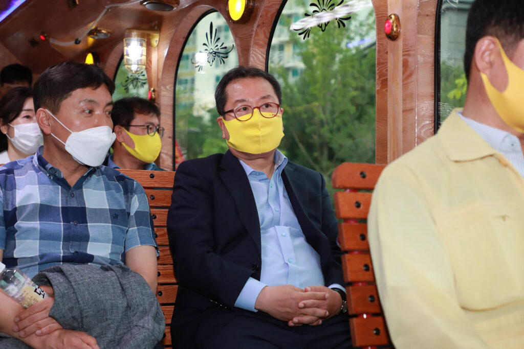 이날 조광한 시장은 별내에너지 정문부터 정약용도서관까지 땡큐 50번 트롤리버스를 직접 탑승해 차량 운행 상황과 버스 방역 상태 등을 꼼꼼히 점검했다.