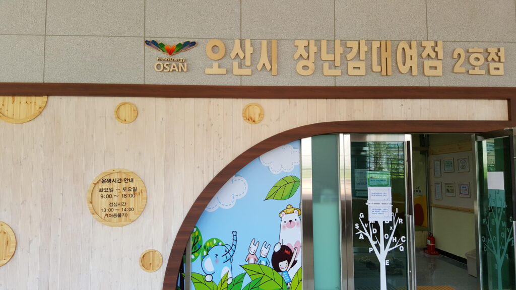 2009년부터 설치·운영 중에 있는 ‘장난감대여점’은 영유아에게 다양한 장난감을 접할 수 있는 기회를 제공하고 가정의 육아비용 경감을 돕고 있다. 2016년에 세교신도시 영유아 학부모들의 서비스 수요에 맞춰 세교종합복지타운내에 2호점을 설치·운영 중이며, 현재 총 2개소가 운영되고 있다.