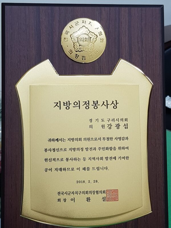 저는 구리시의 의정활동을 통해서 민생현장을 누비며 시민의 편에서 이를 의정에 반영하는 등 나름의 소신있고 성실하게 일을 하였습니다.
