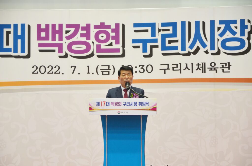 백경현 구리시장은 취임사를 통해 “구리시민의 현명한 선택에 감사하며, 공정과 정의를 바로 세우라는 시민들의 요구에 시민이 주인이 되는 변화와 혁신의 구리시로 보답하겠다”라며 “세계가 주목하는 블루칩의 도시로의 대전환을 위해 첨단 지식산업센터와 일자리 대전환, GTX-B, GTX-E 등 첨단 교통망 신설, 토평동 한강변 최첨단 친환경 스마트 그린 시티 조성 등 5대 정책, 10개 분야, 100가지 약속을 이행하겠다”라고 포부를 밝혔다.