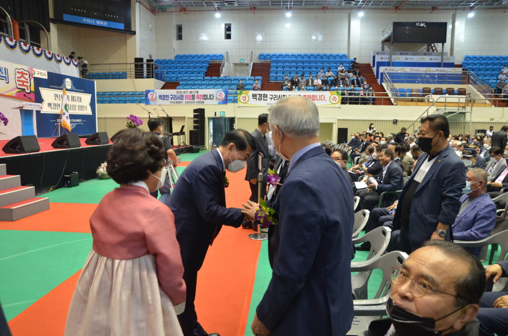 구리시 민선 8기 제 17대 백경현 구리시장 취임식이 1일 오전 10시 30분부터 구리시실내체육관에서 1,500여명의 축하 시민들과 관계자들로 진행되었다.