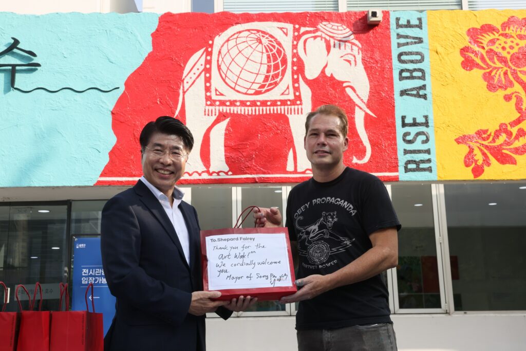송파구(구청장 서강석)는 관내 위치한 롯데뮤지엄에서 전시 예정(7.29~11.6)인 셰퍼드 페어리의 작품을 ‘문화실험공간 호수’에 벽화로 선보인다고 밝혔다.