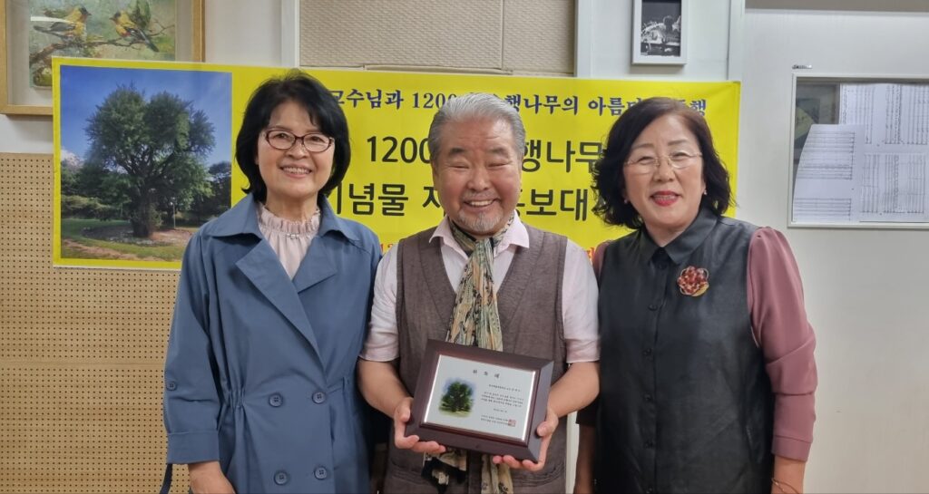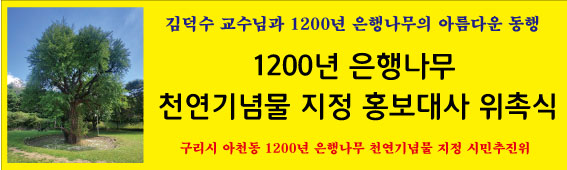 구리시 아천동 1200년 은행나무 천연기념물 지정 추진위(상임대표 박홍기, 허득천)의 이 시민운동에 오랫동안 관심을 보여 온 홍보대사를 맡아준 저명인사를 방문했다.
