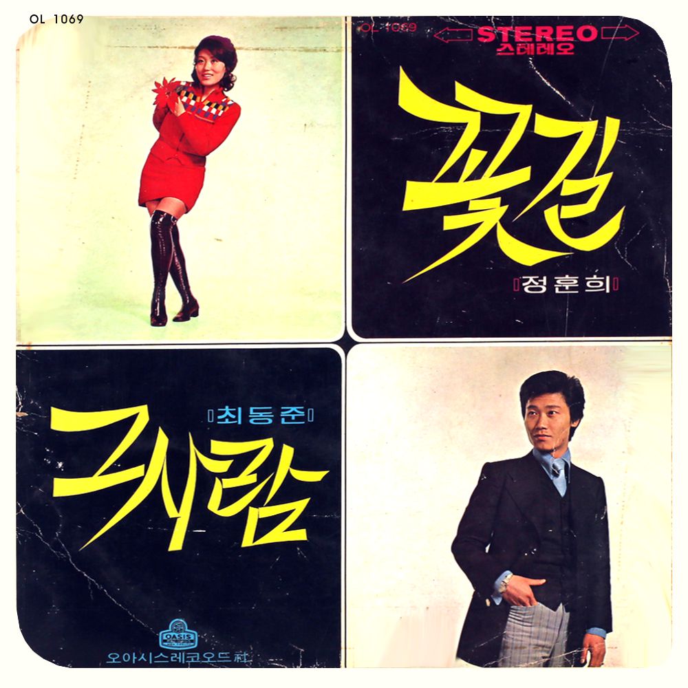 〈꽃길〉1971년 정훈의 누님이 부른 노래로서 1월 11일 오아시스레코드사에서 발매한 ‘꽃길 / 그 사람’ 앨범에 실려 있는 타이틀곡입니다. 음반에는 SIDE A면. 정훈희〈꽃길〉〈어쩌다가〉나훈아〈흰구름 가는 길〉문정선〈봉선화〉바블껌〈엄마는 아빠만 좋아해〉SIDE B면. 최동길〈그 사람〉〈밤 열차〉도성〈파도〉리타김〈그리움이 쌓이면〉죠커스〈이별의 순간〉10곡이 수록돼 있습니다. 이 앨범에는 정훈희 누님과 동갑으로 대전 유성구에서 태어나 지금은 구리시에서 살고 계시는 문정선 누님의〈봉선화〉가 확! 눈에 띄네요.