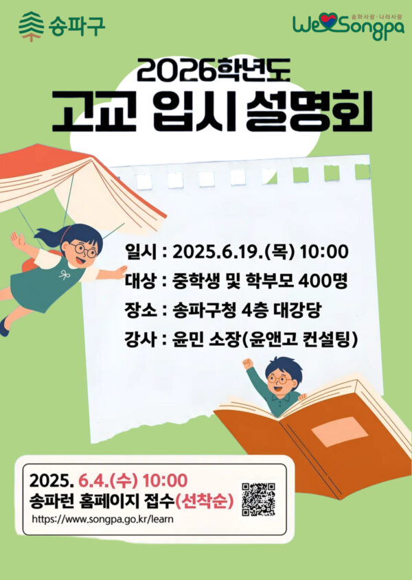 -‘관내 고교별 특성’ 집중…4일 10시 ‘송파런 누리집’서 선착순 4백 명 접수