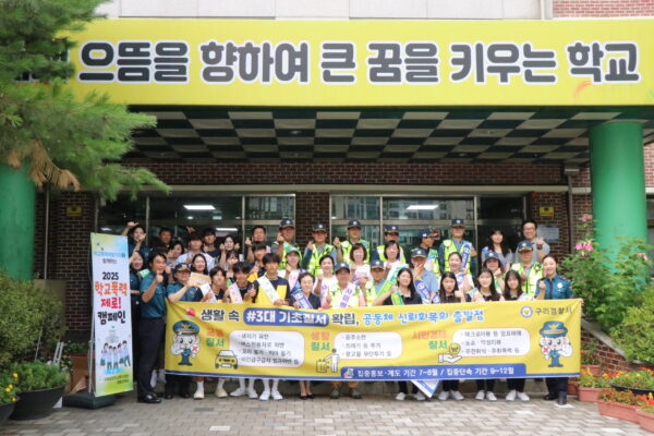 이번 캠페인은 경찰, 교사, 학생, 구리남양주교육지원청, 구리경찰서 재향경우회, 구리시청소년육성회 등 50여명이 참여한 가운데 학교폭력 예방 및 기초질서 확립을 위해 한뜻을 모았다.