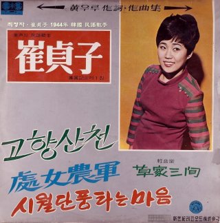 –〈고향산천〉– 황우루 작사, 황우루 작곡, 최정자(1968년 신세기레코드사)
