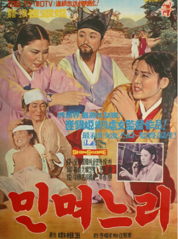 〈민며느리〉1965년 최정자가 부르신 영화 주제가입니다. ‘민며느리’ 즉, 예부(豫婦)는 ‘시집 안간 처녀를 미리 데려다가 기르면서 어느정도 나이가 되면 며느리를 삼는 제도’입니다. 고대 동옥저와 고구려, 조선시대까지 있었던 혼인관습으로 일종의 매매혼(賣買婚)이었습니다. 이러한 ‘민며느리’ 혼인 관습은 오로지 가난 때문에 생겨났다고 합니다. 영화. ‘민며느리’는 원작 이서구, 각본 임희재, 제작 신상옥, 최은희가 감독과 주연을 맡고, 박노식, 황정순, 한은진, 김희갑, 서영춘, 박옥초, 아역배우 장원배 등이 출연해서 1965년 9월 10일 서울의「명보극장」에서 개봉됐던 최은희 영화감독 데뷔작입니다. 점순역의 최은희는 이듬해 1966년 ‘제9회 대종상영화제’에서 여우주연상을 수상했습니다.