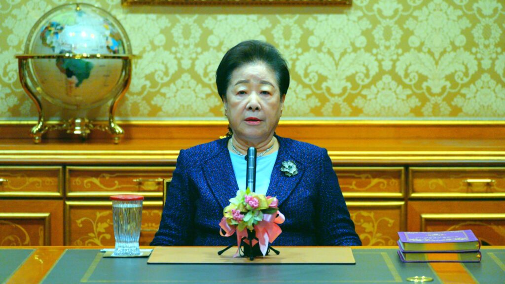 한 총재는 이어 “여러분의 수고와 정성이 ‘하늘부모님 아래 인류 한 가족’ 천일국 이상(理想)에 일치되기 바란다”며 “특별히 하늘부모님께서 택하시고 축복해 나오신 이 대한민국이 하늘부모님을 모시고 사는 선민으로서, 하늘부모님이 소망하시는 선민과 세계평화 주역의 사명을 다하는 감사의 삶을 살아주길 바란다”고 밝혔다.