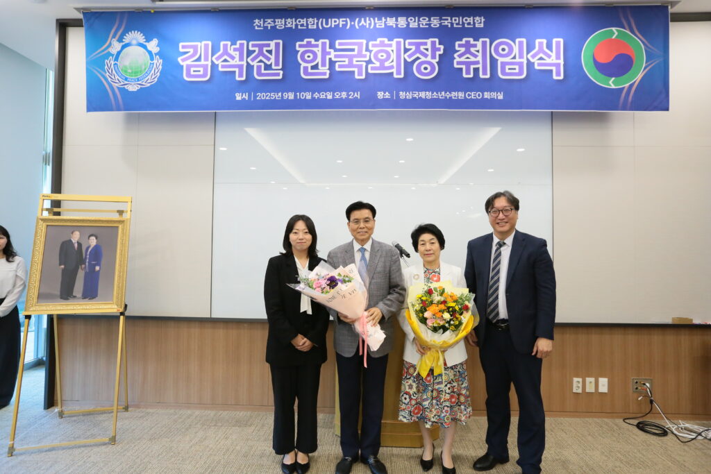 천주평화연합(Universal Peace Federation, UPF)은 10일 오후 2시 경기도 가평 청심국제청소년수련원에서 UPF 및 남북통일운동국민연합 시도지부장 및 회원과 국내외 인사 등 120여 명이 참석한 가운데 김석진 UPF 및 남북통일운동국민연합 한국회장 취임식을 가졌다고 밝혔다.