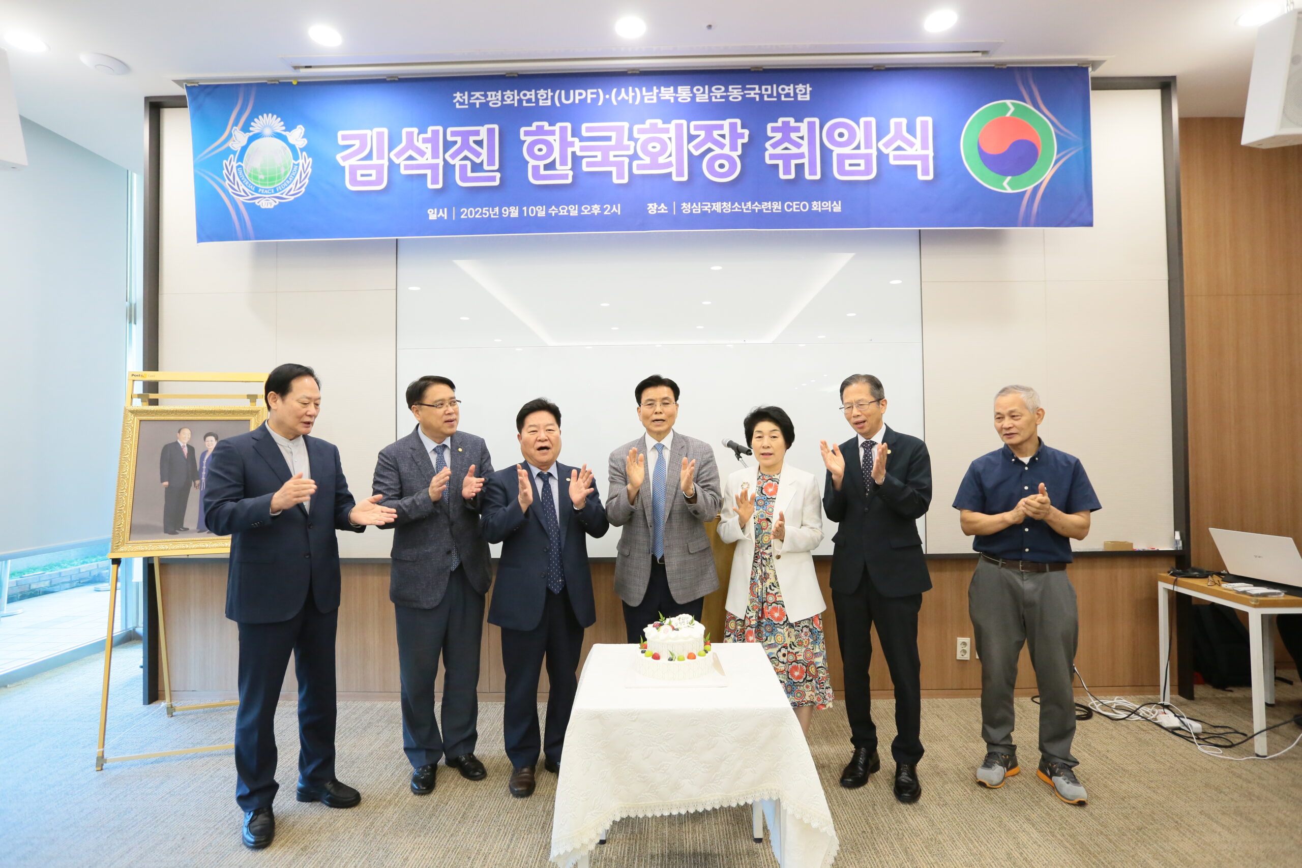 이날 행사는 김경태 UPF 사무총장의 사회로 내빈소개, 약력소개, 꽃다발 증정, 김석진 신임 한국회장의 취임사, 축하케잌 커팅 순으로 진행됐다.
