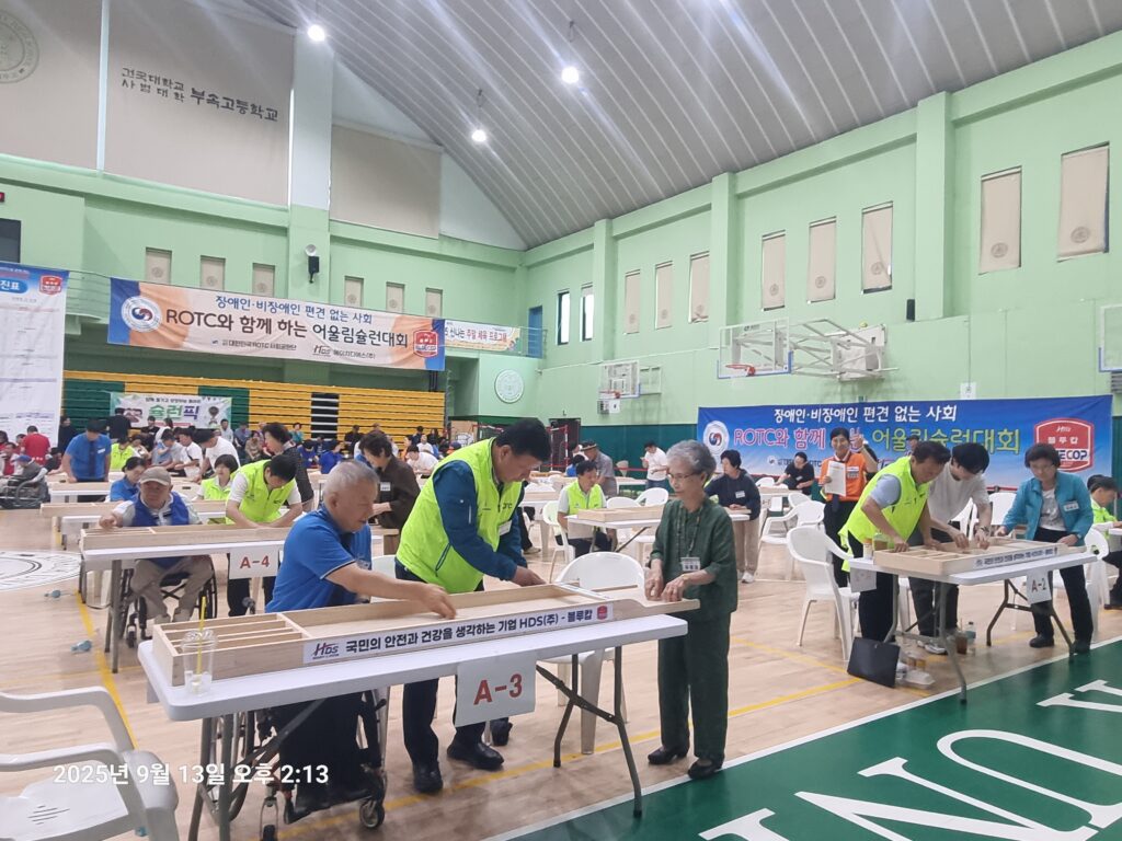 9월 13일(토) 오전 9시부터 오후 4시까지, 건국대학교 부속고등학교 체육관에서 제2회 어울림 슐런대회가 성황리에 개최되었습니다. 이번 대회는 (사)대한민국 ROTC 사회공헌단(한진우 이사장)이 주최하고, (사)한국어울림슐런협회(민경자 회장)가 주관했으며, (주)HDS(조한봉 회장)의 2,000만원 후원으로 더욱 뜻깊은 자리가 마련되었다.