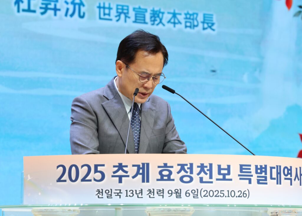 세계평화통일가정연합 한국협회(이하 한국가정연합)는 전 세계 통일가의 화합과 화평으로 인류 한 가족을 이루기 위한 ‘2025 추계 효정천보 특별대역사 세계연합예배’를 지난 26일 경기도 가평에 위치한 HJ천주천보수련원에서 개최했다고 밝혔다.
