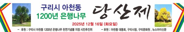이번 행사는 “구리시 아천동 1,200년 은행나무 천연기념물 지정 시민추진위원회”가 주최했으며, 후원은 아천동 대동회,구리시,구리문화원,한국석유공사 구리지사와 뉴스아이신문이 후원하였고, 지역 주민과 관계자 등 총 88명이 참석한 가운데 전통 제례 형식으로 차분하고 엄숙하게 진행됐다. 아천동 은행나무 당산제는 마을의 수호신 역할을 해온 은행나무에 한 해의 평안과 풍요를 기원하는 전통 행사로, 1981년 한국석유공사 구리지사 조성 이후 중단됐다가 2022년부터 추진위의 노력으로 다시 이어져 오고 있다.