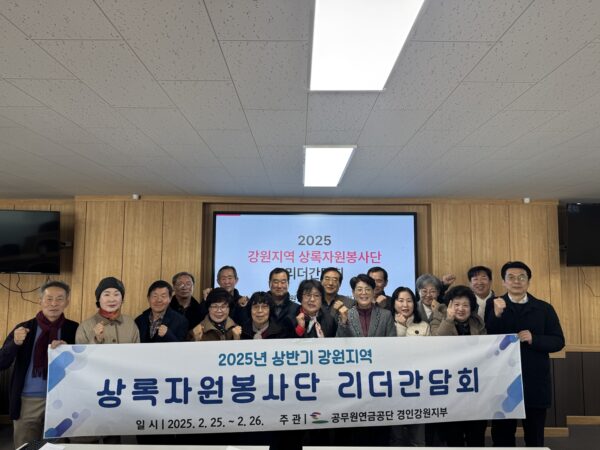 공무원연금공단(이사장 김동극, 이하 ‘공단’) 경인·강원지부는 25일부터 이틀간 강릉시와 춘천시 내 회의장에서 ‘2025년 상반기 강원지역 상록자원봉사단 리더 간담회’를 개최했다.