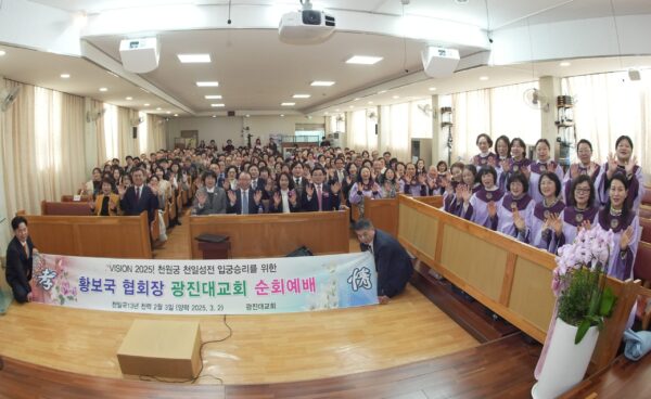 국내외적으로 불안한 정세로 인한 혼란과 갈등을 넘어 신통일한국과 세계평화를 염원하기 위해 세계평화통일가정연합(통일교)은 지난 2일, 황보국 한국협회장이 서울 광진대교회를 방문해 가정연합 신도 및 평화대사 300여 명이 참석한 가운데 ‘Vision 2025, 천원궁 천일성전 입궁승리를 위한 황보국 협회장 광진대교회 순회예배’를 실시했다고 밝혔다.